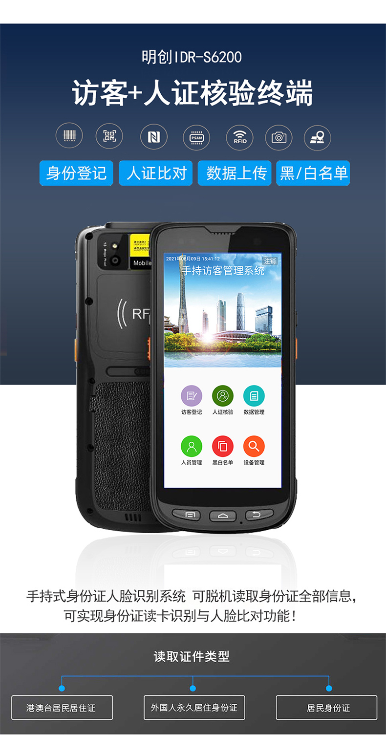 產品支持身份證識別,人證對比,黑名單比對,來訪登記,支持4g,云平臺上傳,提供二次開發,支持訂制