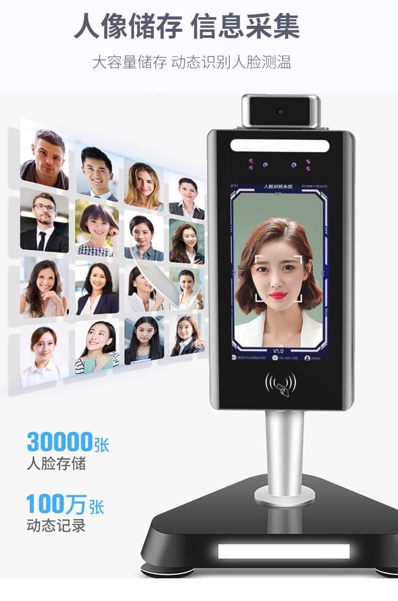 明創IDR-R108人臉識別測溫機可以遠距離進行測溫,識別是否戴口罩,同時做一個人臉識別