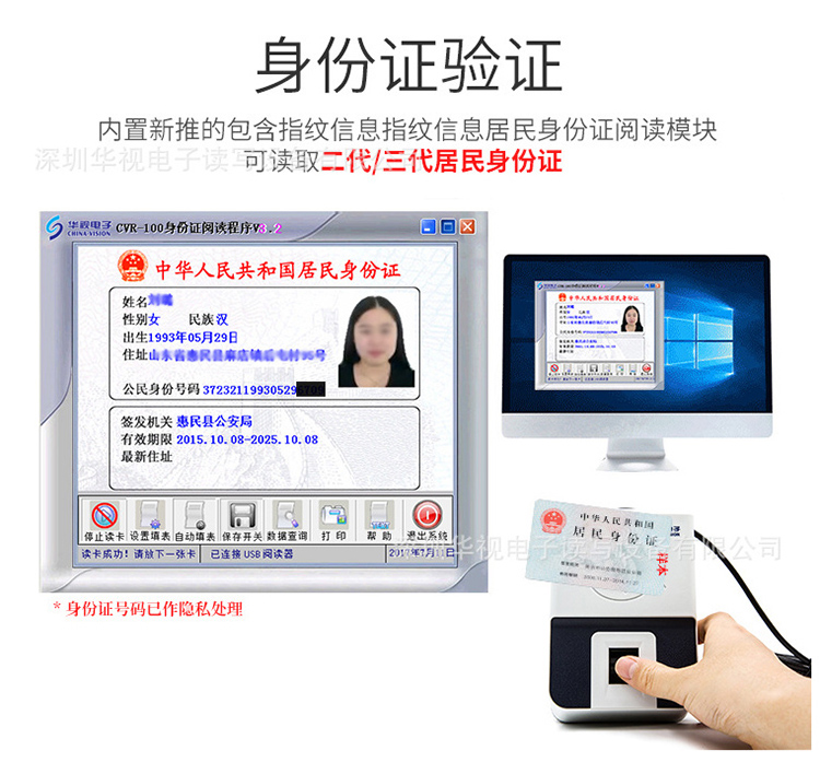 華視CVR-300EF可同時讀取身份證信息,指紋比對,人臉比對,功能全面,價格實惠