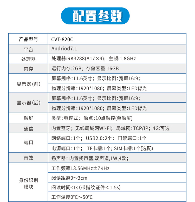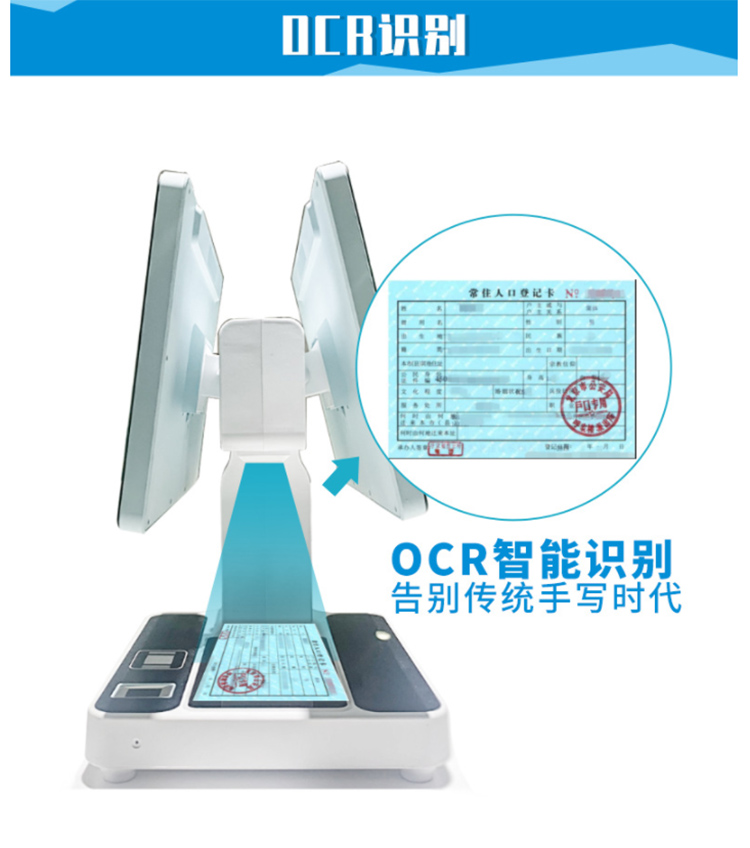 華視cvt-820c雙屏訪客機用于人證比對,人臉識別,證件掃描,熱敏打印,條碼掃描,無線通訊